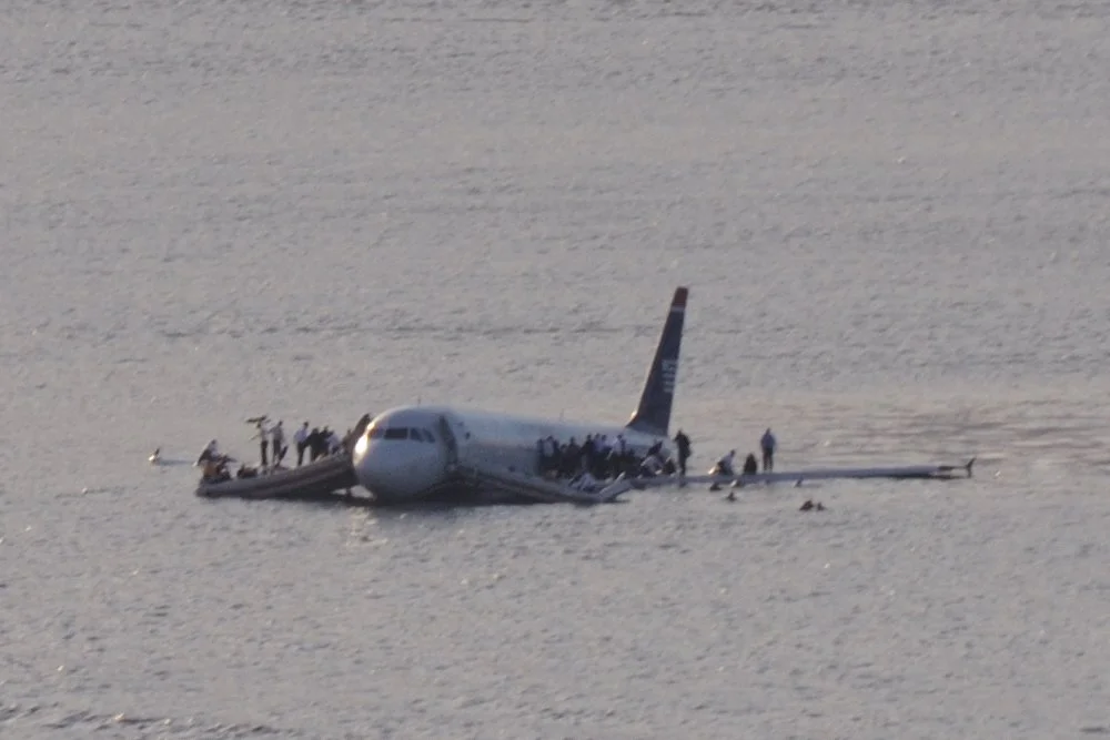 US Airways Flight 1549 (N106US) after crashing into the Hudson River. Credit: Greg L. Photo licensed under Creative Commons.